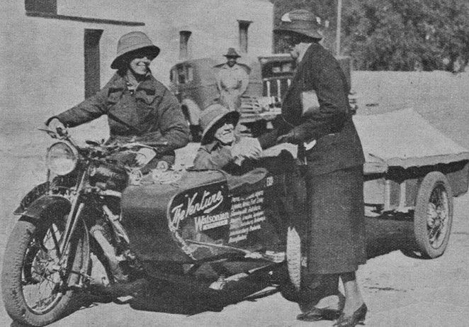 At about this time Florence and Theresa began discussing riding a motorcycle and sidecar from London to Cape Town, South Africa. Phelon and Moore Ltd of Cleckheaton, Yorkshire were persuaded to provide a suitable motorcycle – a Panther Model 100 single cylinder 600cc especially suited for hauling a sidecar – and Watsonian donated a sidecar and trailer. On December 11th, 1934 the heavily laden ensemble, now called ‘The Venture’, received a grand send‐off from London.