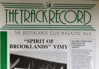 The Brooklands Club was a support group for the Museum with access to the Members' Bar, snooker room and restaurant for its members. It published a regular A4 monochrome newsletter called "The Track Record" in the mid 90's.
